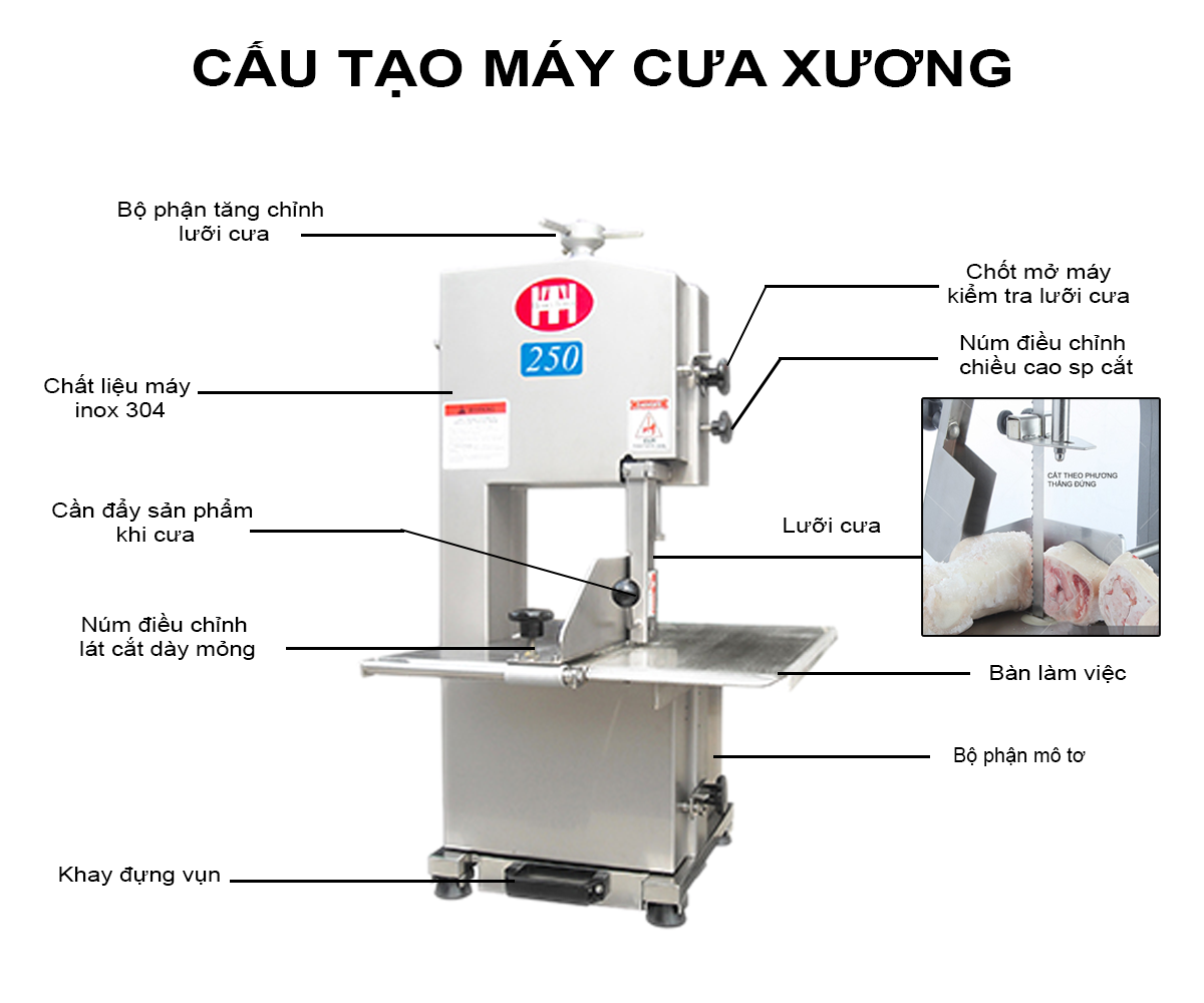 Hiện nay do nhu cầu thị trường về thực phẩm ngày càng tăng cao, tiêu thụ lượng lớn cá thịt đông lạnh nên việc sử dụng những chiếc máy cưa xương, cưa thịt đông lạnh là rất cần thiết. Không chỉ giải quyết lượng lớn xương thịt trong thời gian ngắn, máy cưa xương còn đảm bảo lát cắt đều, đẹp và thẩm mỹ hơn so với cắt thủ công.